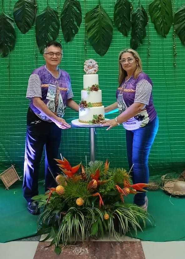 Diácono JOSÉ LARANJEIRA e ALICE Casal Coordenador Geral do XVIII Congresso da Região Norte, com Bolo em comemoração aos 50 anos do ECC da Arquidiocese de Belém do Pará